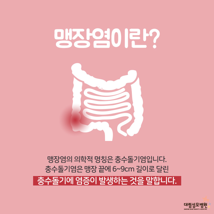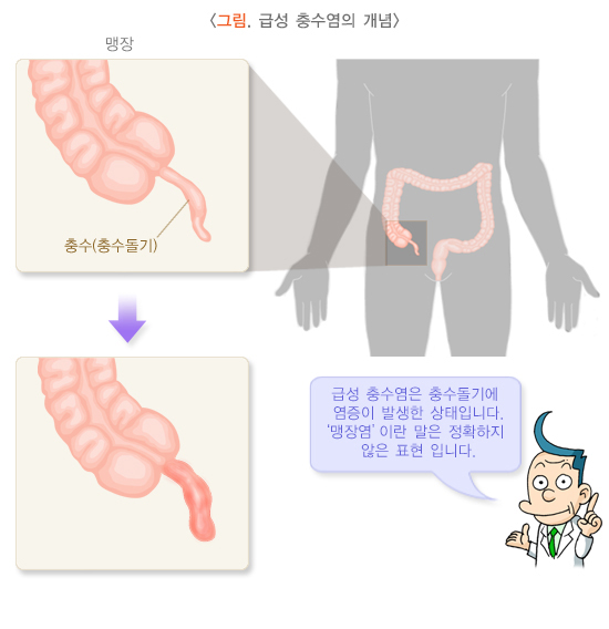 대장의 시작 부분에 있는 충수돌기에 염증이 생기는 질환이죠.