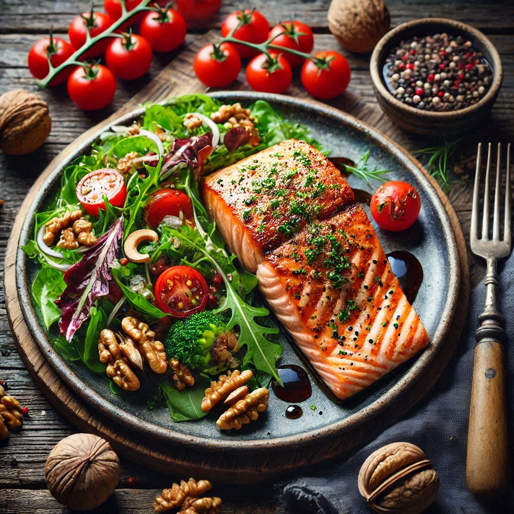 저녁 식사에 연어 스테이크와 호두 샐러드를 곁들여보세요.