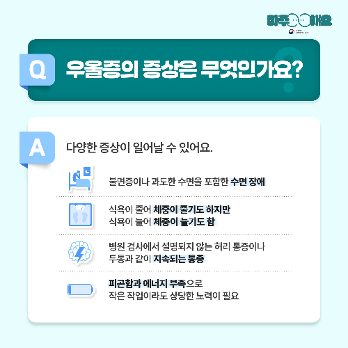 우울증이 의심된다면 주저하지 말고 전문가의 도움을 받으세요.