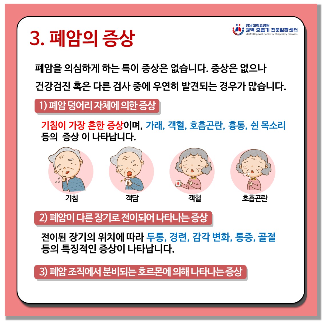 폐암의 초기증상은 때로는 미미하거나 다른 질병과 비슷할 수 있습니다.