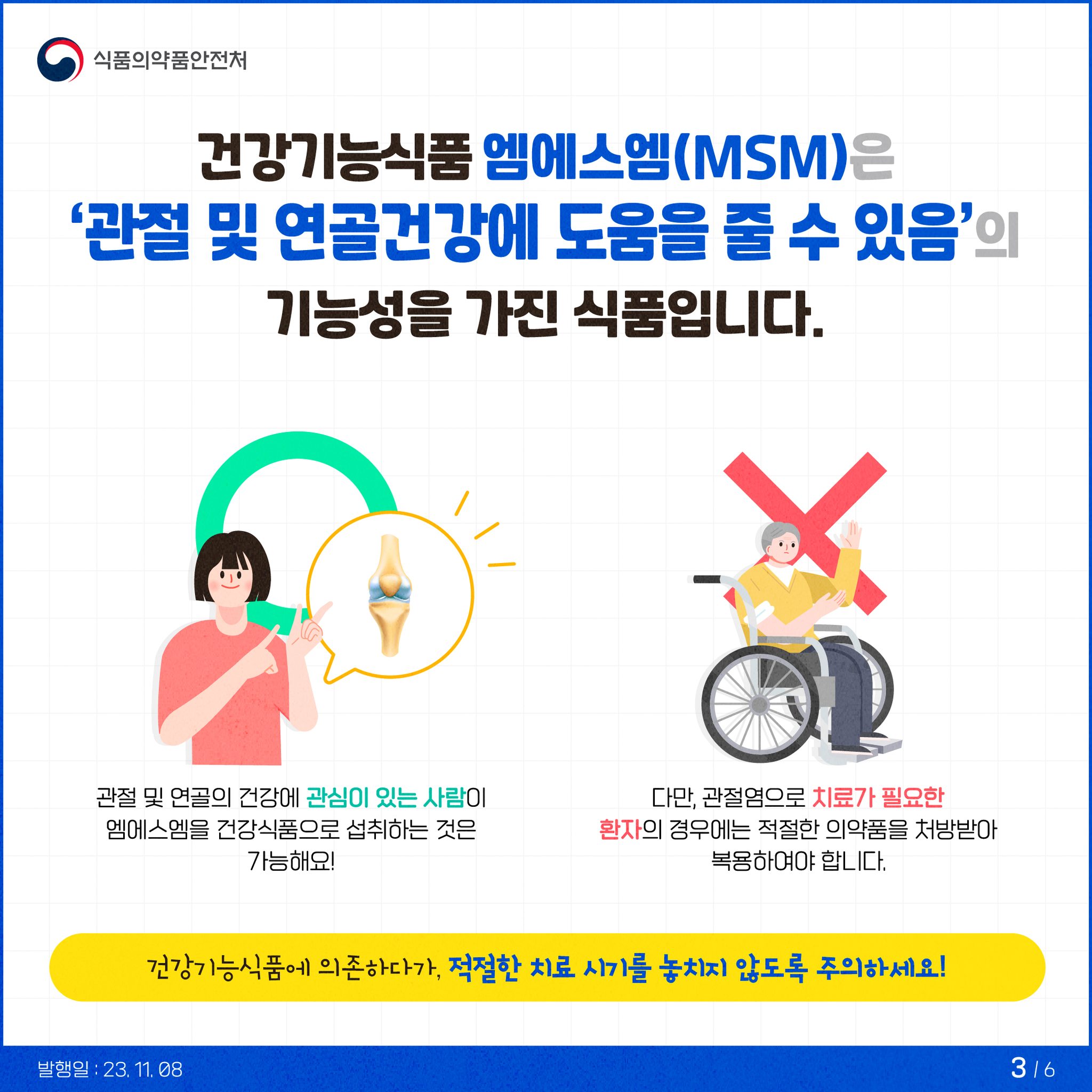 - 간 또는 신장 질환자: MSM의 대사에 영향을 줄 수 있으므로 주의가 필요합니다.