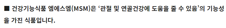 우리 몸에 필수적인 황을 공급하는 역할을 하는 msm은 특히 관절 건강에 도움을 주는 것으로 알려져 있죠.