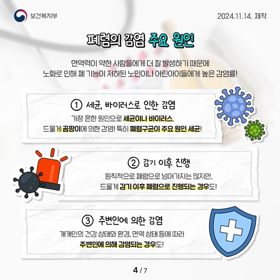 폐렴의 원인은 다양하지만, 주로 미생물 감염에 의해 발생합니다.
