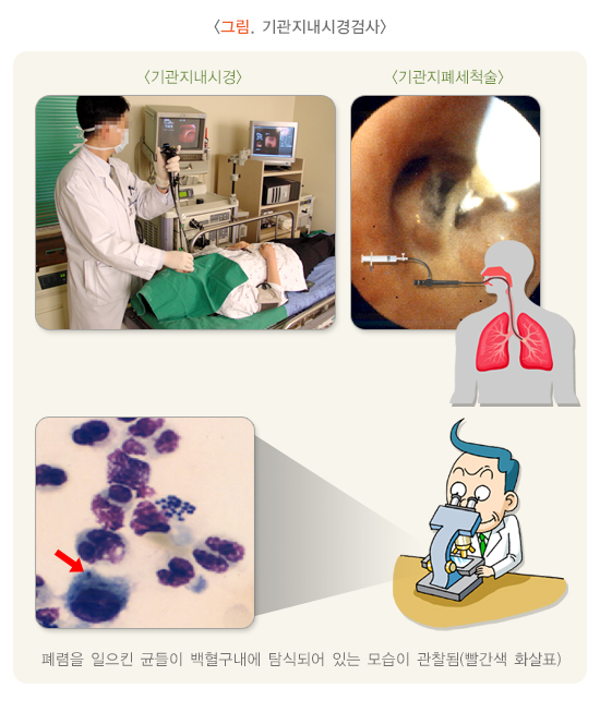 - 객담 검사: 기침할 때 나오는 가래를 검사해 원인 균을 찾습니다.